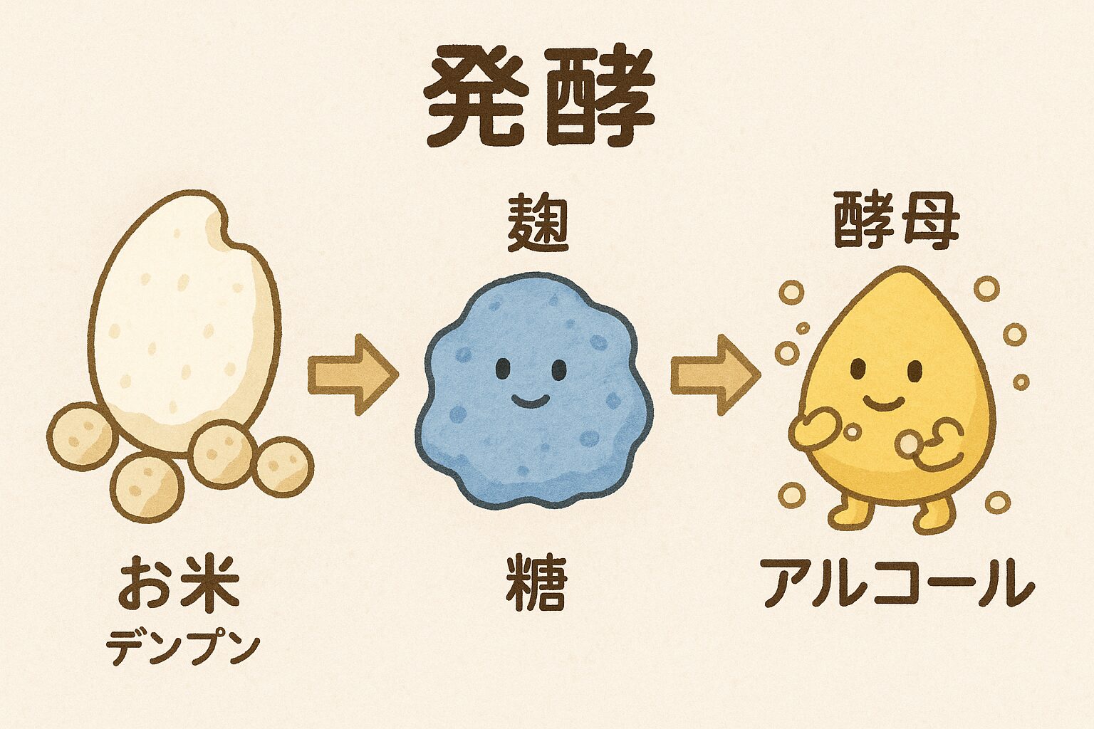 お酒は、お米のデンプンを麹が糖に変え、その糖を酵母が食べてアルコールに変える「発酵」という工程で作られます。この発酵の過程で糖がどれだけアルコールに変わらずに残ったかが、甘口か辛口かを決め