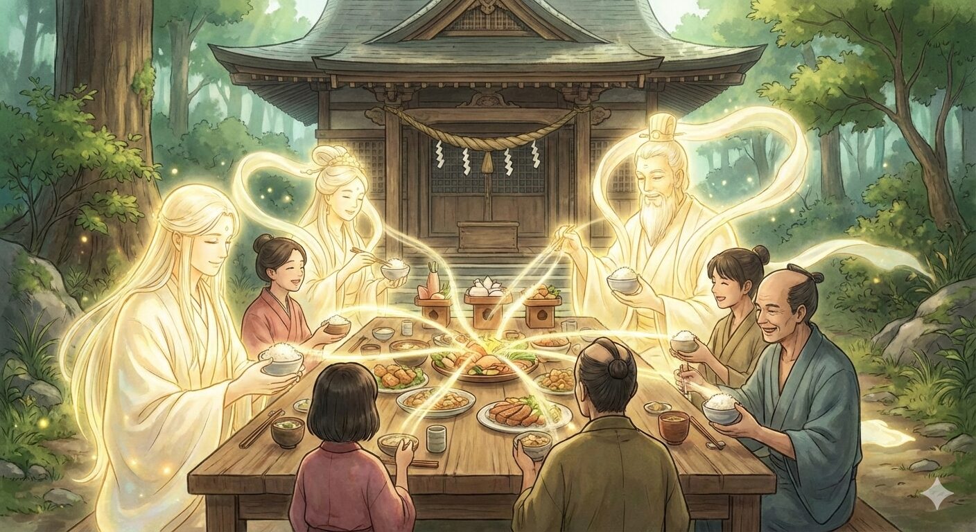 そしてもう一つ、最も重要な意味が「神人共食(しんじんきょうしょく)」です。