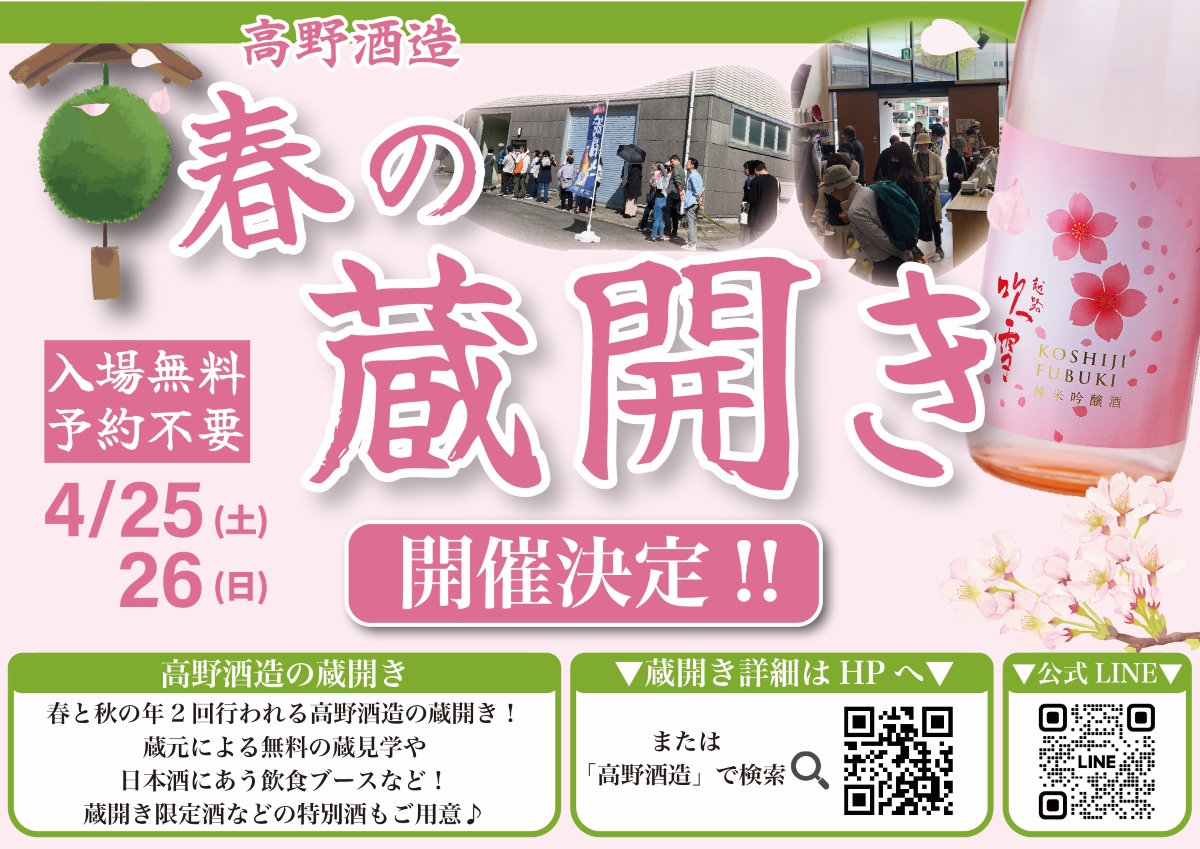 春の蔵開き開催決定!4月25日(土)26日(日)の2日間開催!